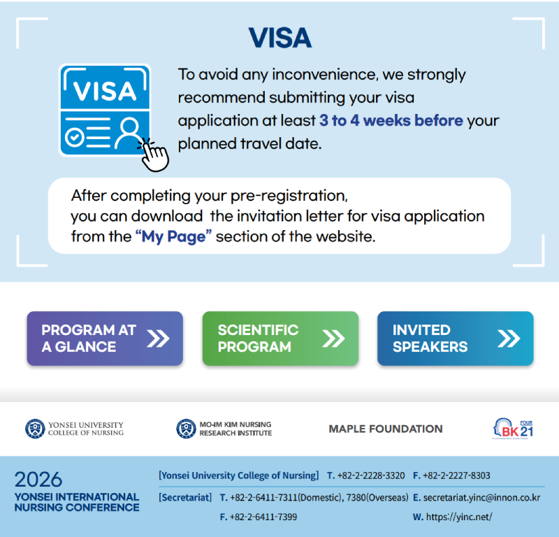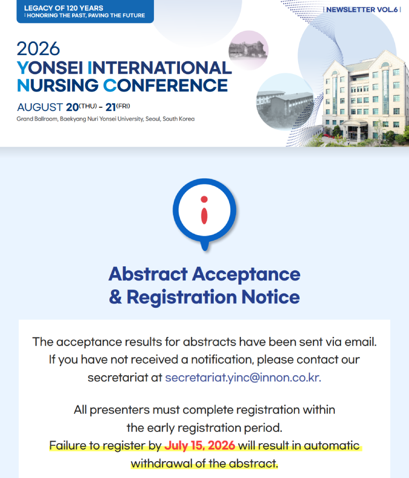 News & Notice [Yonsei Nursing] Abstract Acceptance Notification - Vol.6 Hit : 63 Date : 2026.04.15 List