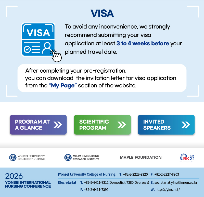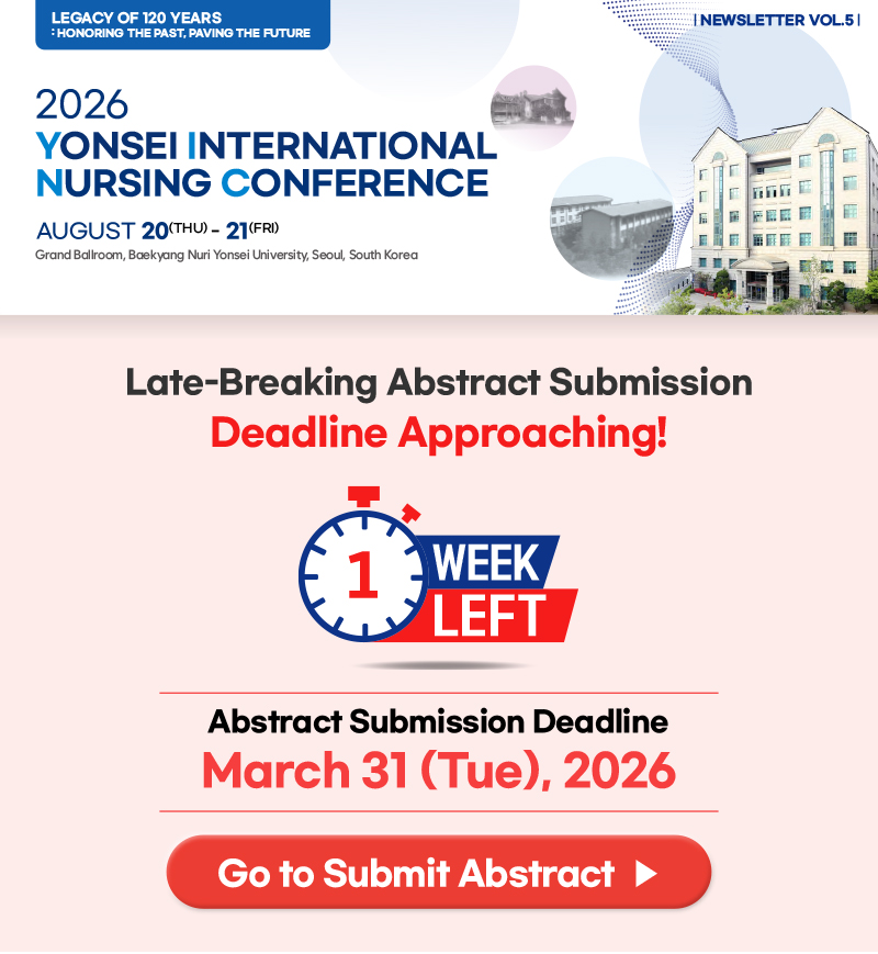 News & Notice [Yonsei Nursing] 1 Week Left for Late-Breaking Abstract Submission & Registration Now Open - Vol.5 Hit : 74 Date : 2026.03.24 List