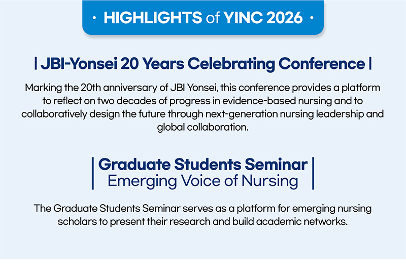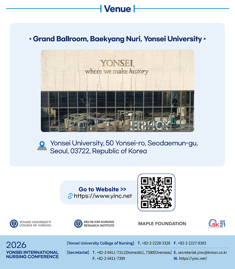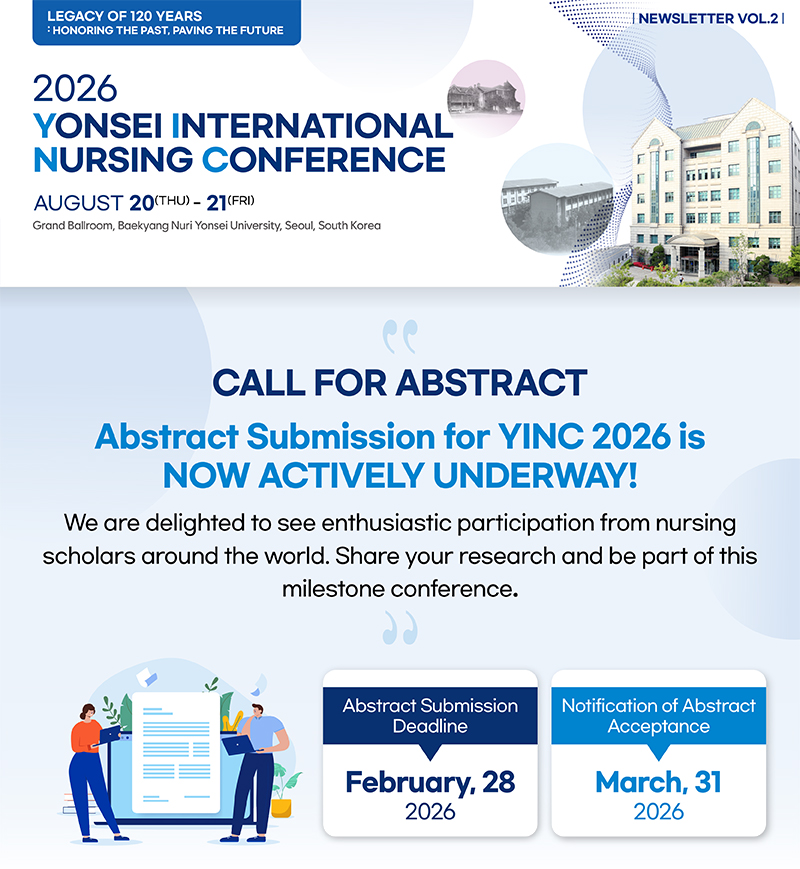 News & Notice [Yonsei Nursing] Submit Your Abstract for 2026 Yonsei International Nursing Conference-Vol.2 Hit : 133 Date : 2026.02.03 List